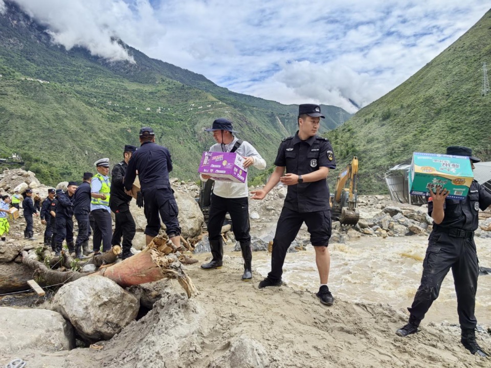 受灾现场,抢通“生命通道”成为首要任务。由于国道G248部分路段被掩埋,救援物资依靠无人机空投,人员则借助挖掘机铲斗涉水转运。“站在河道中央,脚下水流湍急,稍有不慎就会被冲走。”袁兴超回忆,“那段时间每天都可能面临危险。”他提到了一次惊心动魄的经历:当时他跟随工作队领队,在某点位协调对接相关工作,可一行人刚离开该位置不足一分钟,现场就突发塌方,碗口粗的树干与巨石轰然滚落,场面十分凶险。袁兴超表示,现在想起来,也是一阵后怕,“但我们当时想不了这么多,只记得里面还有人在等着我们去救援。”